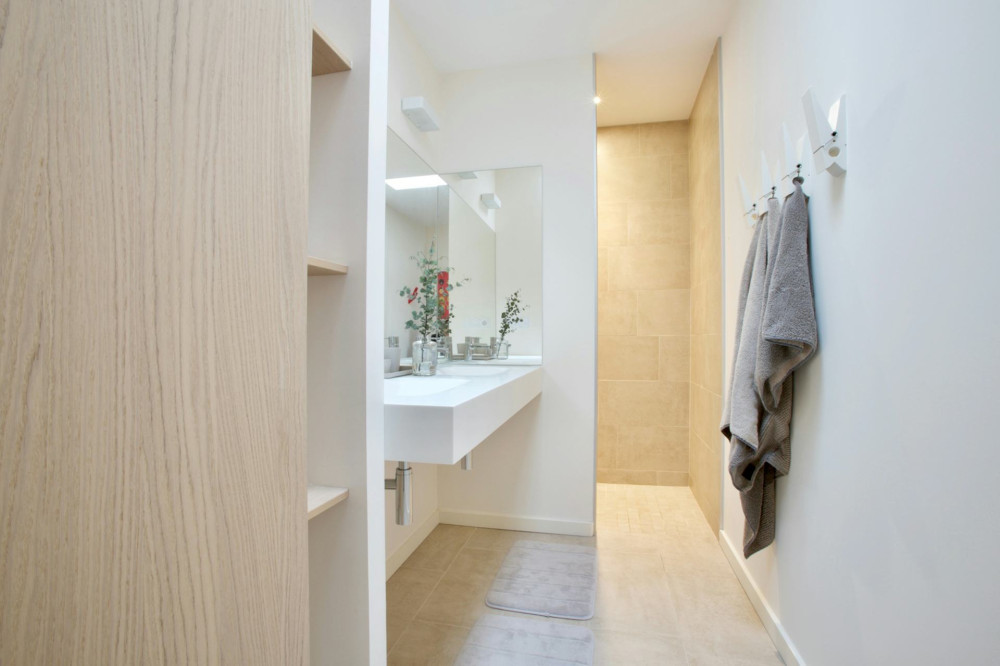 - Ett fristående tvättställ eller ett möbel med rundade hörn kan fungera som blickfång.